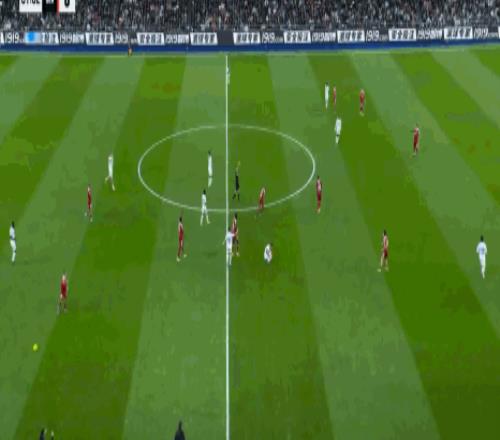 皇马前段时间由于后防线的糟糕表现,让他们连连爆冷丢分,上周末客场险胜阿拉维斯才止住颓势,今天回到伯纳乌球场对阵塞维利亚,皇马的后防线还是不稳,不过塞维利亚把握机会能力一般。开场后皇马展开猛烈攻势,第5分钟,皇马中路推进,贝林厄姆送出精妙直塞,加西亚后排插上突入禁区获得小角度单刀良机,只是他捅射慢了半拍,被及时出击的门将弗拉乔迪莫斯奋力将球裆下。2分钟后,塞维利亚前场左路快攻,罗梅罗及时插上突入禁区获得超级单刀机会,只不过罗梅罗也没有把握住单刀,挑射稍稍偏出远端门柱,双方这是都浪费了1个单刀。