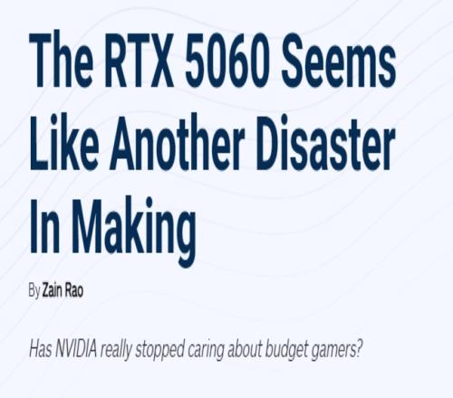 电竞资讯04月20日称 日前,外媒tech4gamers发文吐槽了英伟达最新 RTX 5060 显卡的表现。作者指出英伟达 RTX 50 系列显卡的发布本就褒贬不一,从高昂售价、产能短缺,再到显卡本身的问题,都让玩家怨声载道。如今轮到亲民的60系列登场,但整体表现看起来依旧不尽如人意。